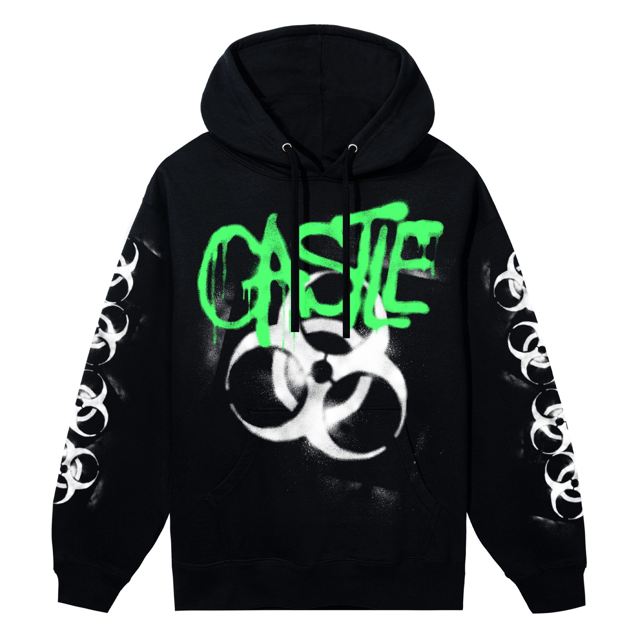 Mid-weight soft cotton blend hoodie with screen-printed graphics.